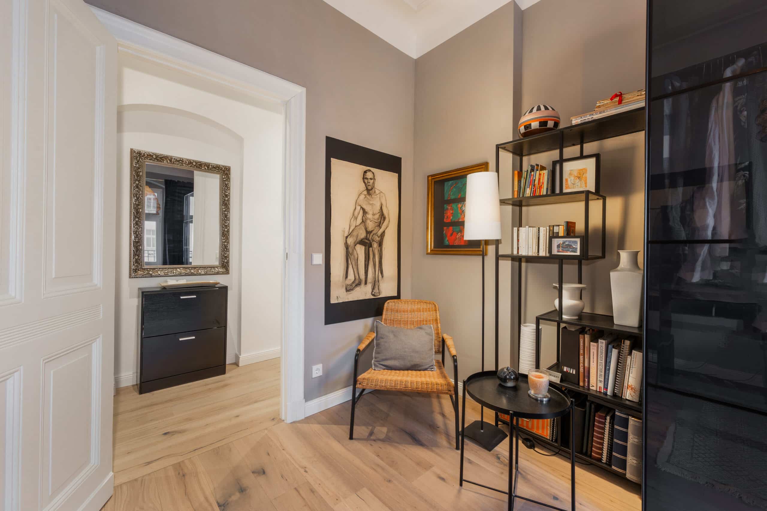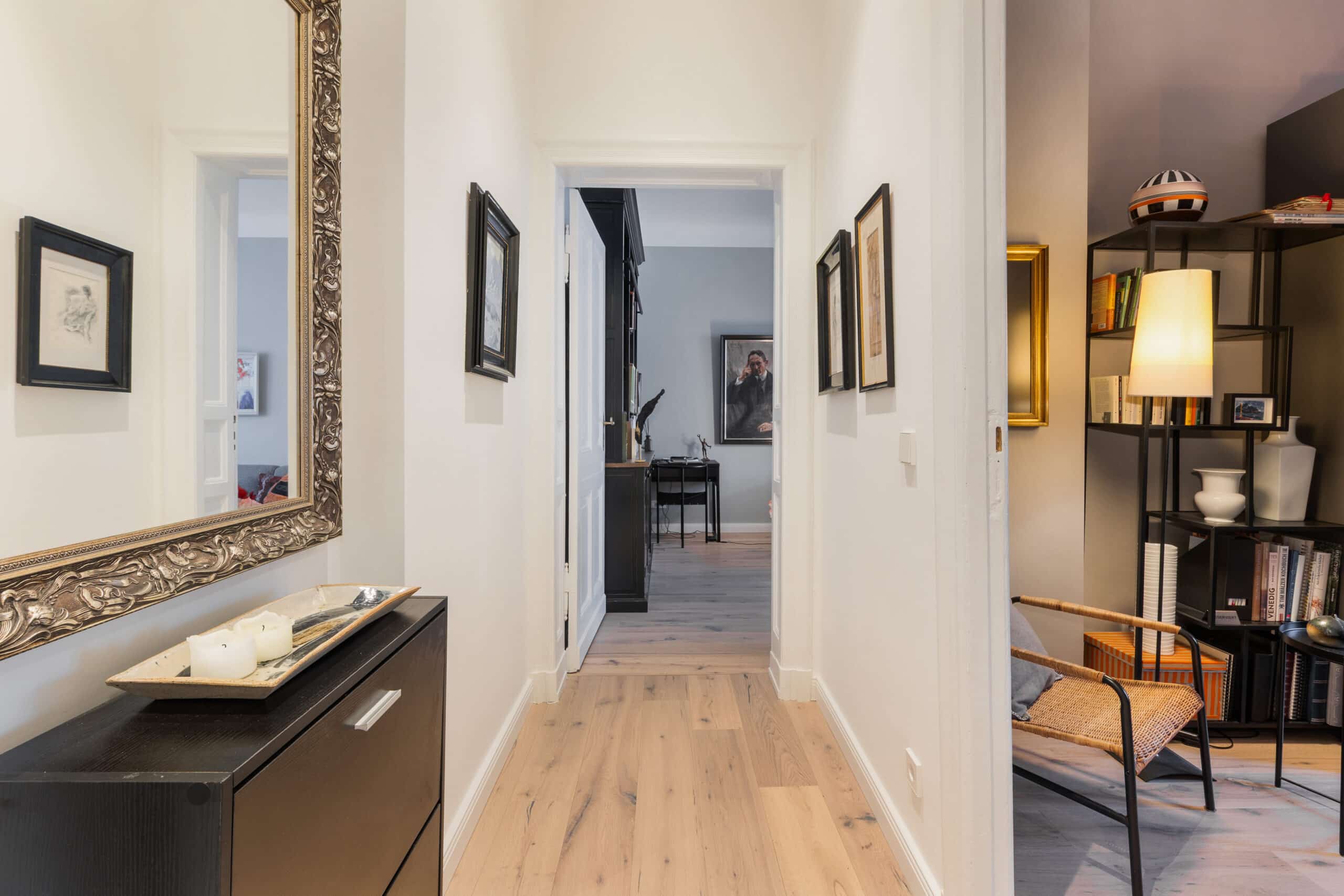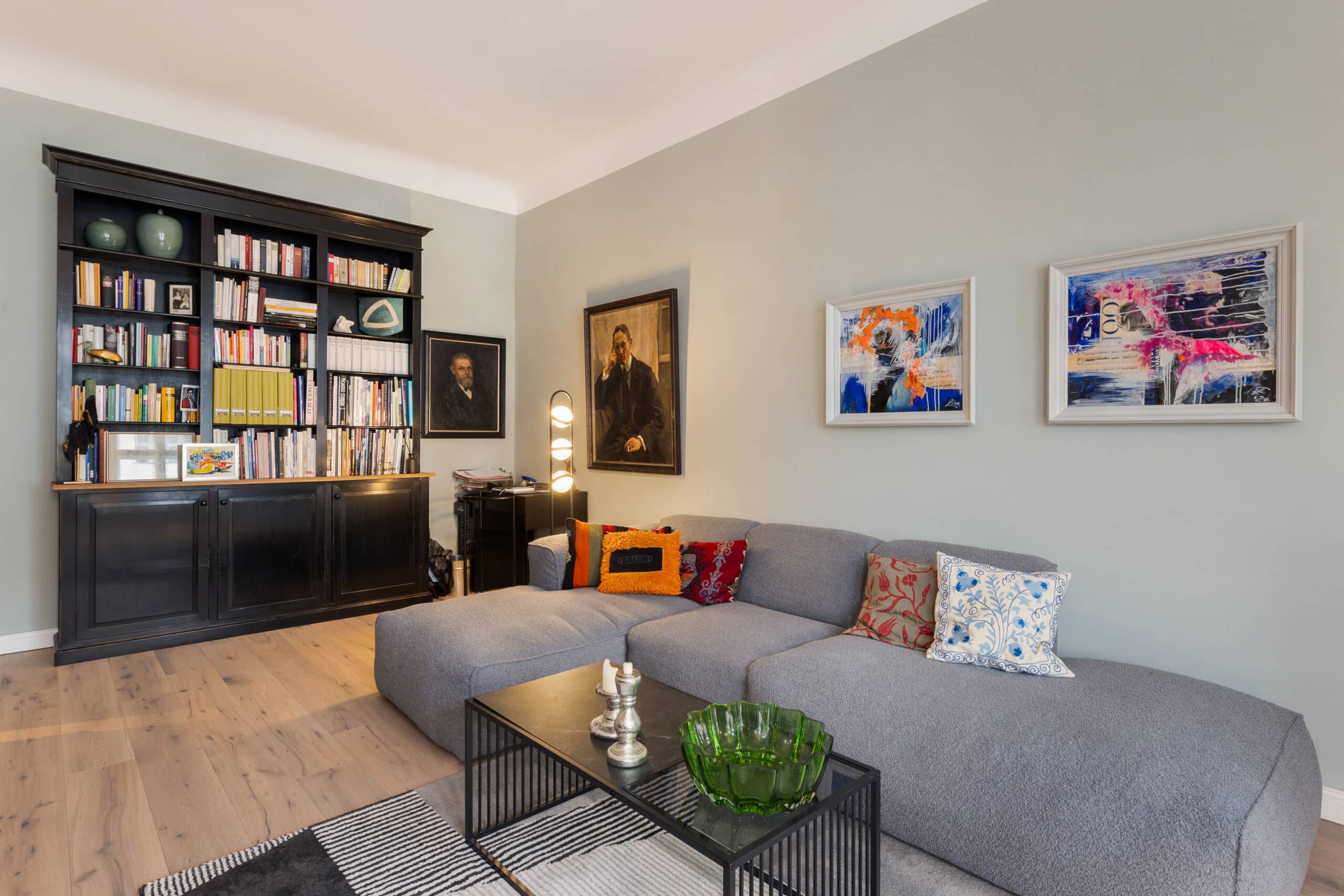 - Die Türen und großformatigen Fenster mit typischen Altbau-Proportionen wurden behutsam aufgearbeitet und fügen sich harmonisch in das Gesamtbild ein.